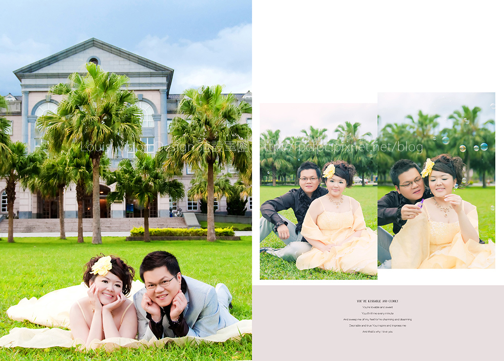 這次的任務與我實際的專長非常跳tone, 還好本著有極大的攝影興趣, 讓自己親弟弟來當這次的麻豆, 間接也幫他(她)們完成這次的婚紗外景拍攝, 艷陽下的你(妳)們與工作人員辛苦了 ! 以下上傳設計多時的婚紗美編給大家欣賞! Barry & Angel Wedding 20 P 跨頁美編設計 謝謝各位的賞圖! 接下來要忙碌的就是訂婚與結婚現場平面攝影工作 辛苦是值得忙碌後看到照片完整的呈現 心中激起一種無比的成就感!!